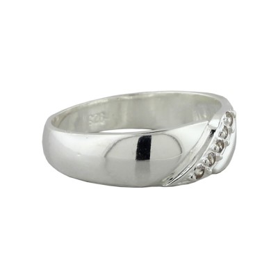 Argolla de Plata 925 con diseño diagonal de 5 zirconias corte brillante de 2 mm en montadura de uñas.